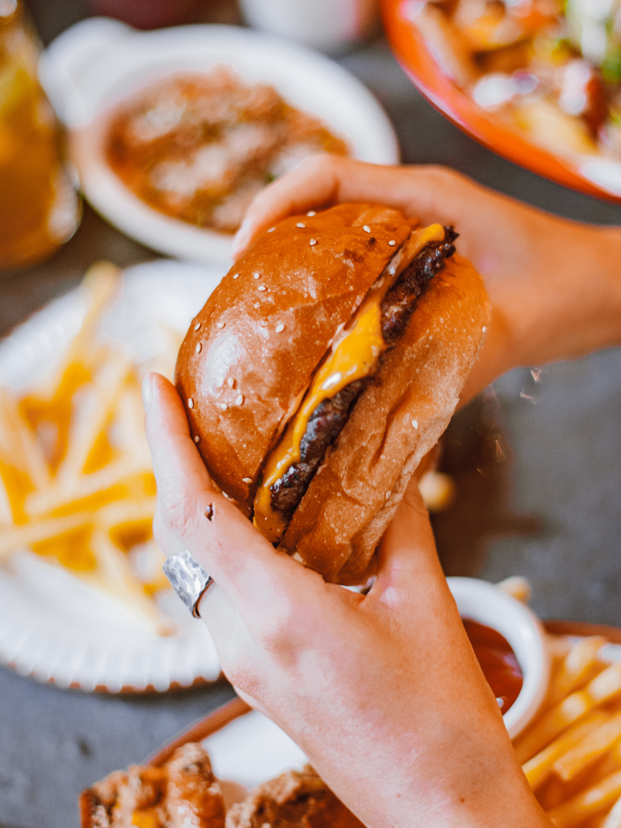 A juicy Wagyu patty topped with American cheese, with your choice of fresh lettuce, tomato, and onion on a soft toasted brioche bun.